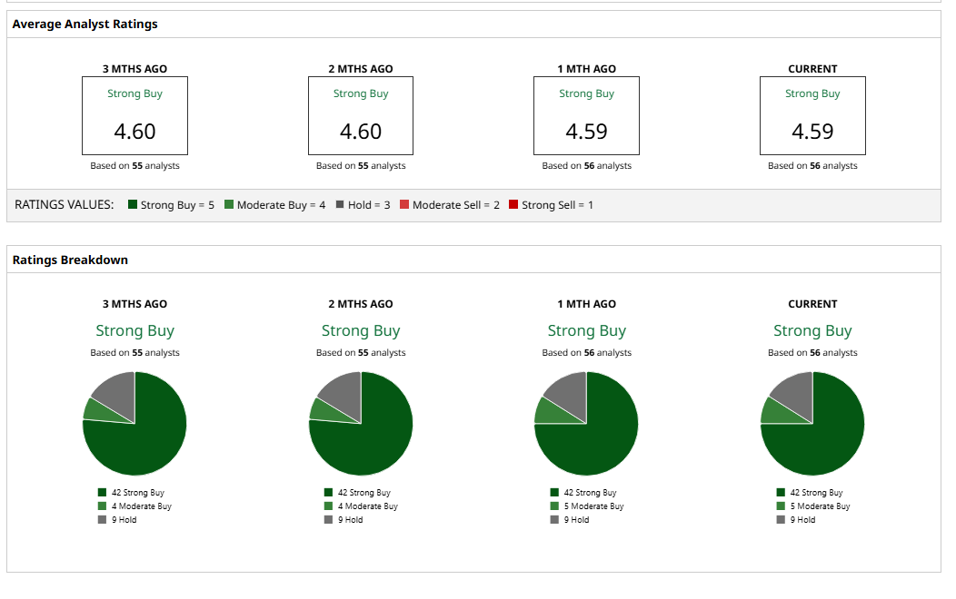 Overall, on Wall Street, GOOGL stock is a “Strong Buy.” Of the 56 analysts covering the stock, 42 rate it a “Strong Buy,” five say it is a “Moderate Buy,” and nine rate it a “Hold.” The stock has surpassed the average target price of $266.60. However, its high price estimate of $310 suggests the stock has upside potential of 9% over the next 12 months.