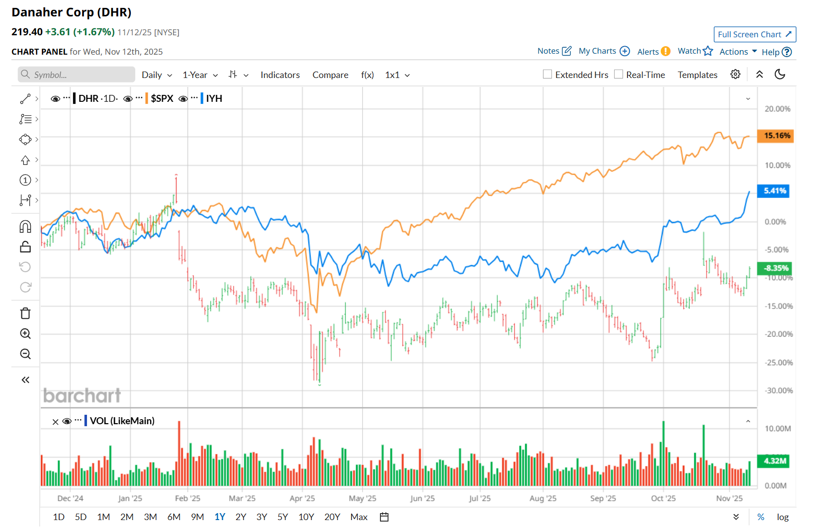 Narrowing the focus, DHR has also lagged behind the iShares U.S. Healthcare ETF’s (IYH) 3.4% uptick over the past 52 weeks and 10.3% YTD rise.