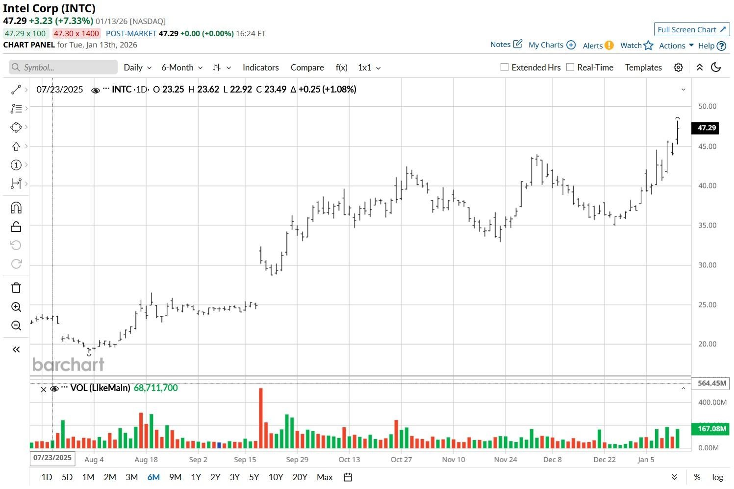 Intel (INTC) shares have been in a sharp uptrend over the past five months, but a senior KeyBanc analyst believes “significant progress” in the foundry business could push them up further in 2026.