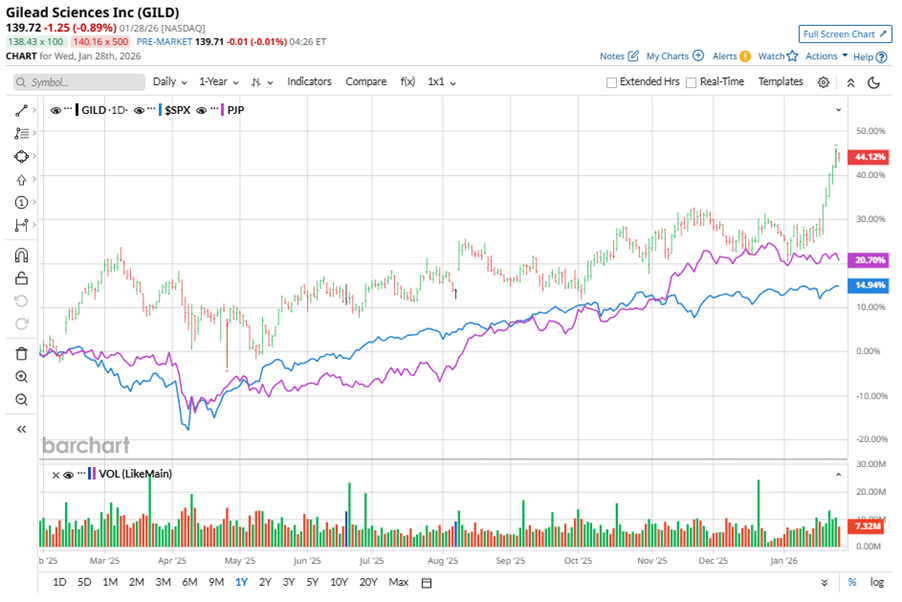 Shares of this HIV giant have outperformed the broader market over the past year. GILD has gained 48.9% over this time frame, while the broader S&P 500 Index ($SPX) has rallied nearly 15%. In 2026, GILD stock is up 13.8%, surpassing the SPX’s 1.9% rise on a YTD basis.