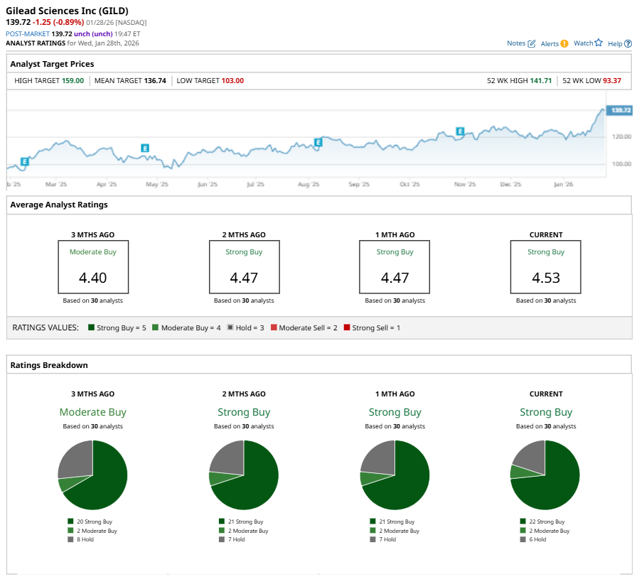 On Jan. 27, Truist Financial Corporation (TFC) kept a “Buy” rating on GILD and raised the price target to $145, implying a potential upside of 3.8% from current levels.