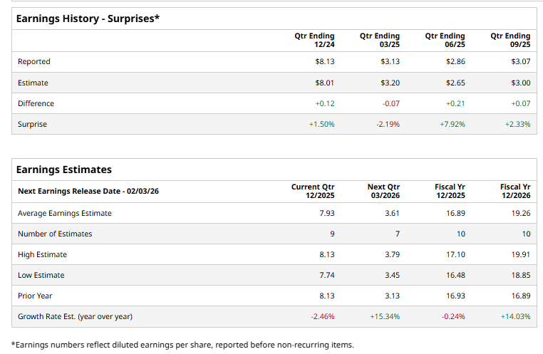Willis Towers Watson is expected to release its fiscal Q4 2025 earnings results shortly. Ahead of this event, analysts expect WTW to report an adjusted EPS of $7.93, down 2.5% from $8.13 in the prior year's quarter. It has surpassed Wall Street's bottom-line estimates in three of the past four quarters while missing on another occasion.