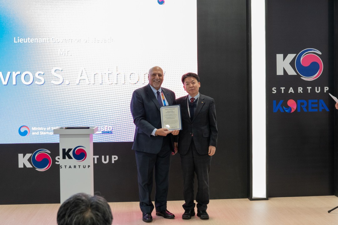 The commendation was presented during the opening ceremony of the “CES 2025 K-Startup Pavilion” at Eureka Park on January 7, the opening day of CES 2025. The event was attended by Sung-sup Kim, Vice Minister of SMEs and Startups, and Stavros S. Anthony, Lieutenant Governor of Nevada, who delivered a congratulatory address and personally presented the award.