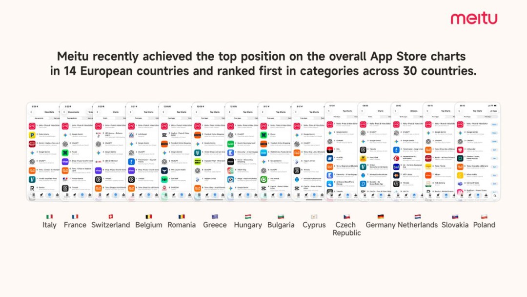 Meitu’s “AI Group Photo” Feature Takes Europe by Storm, Achieving Top Position in App Stores Across 14 Countries