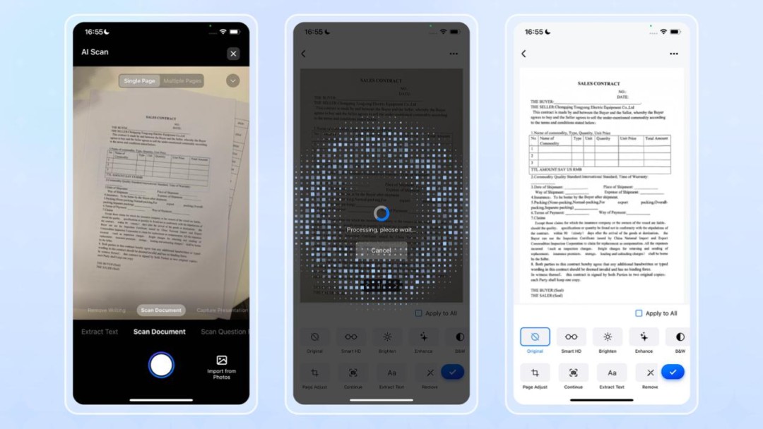 Multi-page Burst Scan: Whether it’s a thick textbook, a multi-page contract, or scattered notes, users can easily digitize all pages at once with the “AI Scanning” burst-mode feature.