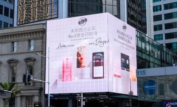 On Queen Street, Auckland’s most iconic commercial avenue, Bio-E products, including Physmo Essence, Pearly White Essence and AG Conditioning Essence have taken their place in prominent outdoor advertising displays. These visuals mark Bio-E’s growing presence in New Zealand’s consumer health landscape.