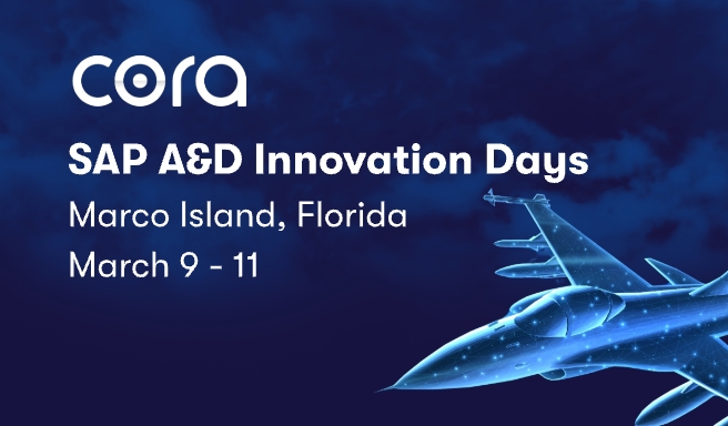 SAP A&D Innovation Days draws decision-makers from IT, operations, and manufacturing within aerospace and defense companies. Cora's team will be available throughout the three-day event to discuss specific program management requirements and demonstrate platform capabilities.