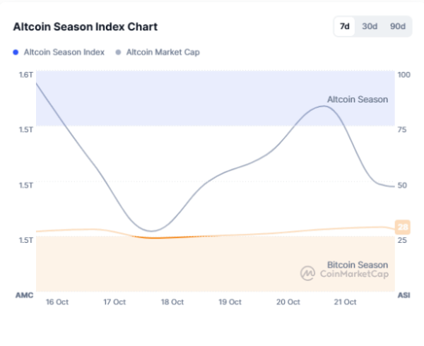 This is confirmed by the Altcoin Season Index, a measure of how top altcoins perform compared to Bitcoin. The index has risen in recent days from 24 to 29 and has now more than doubled from its yearly low of 12 on April 25.