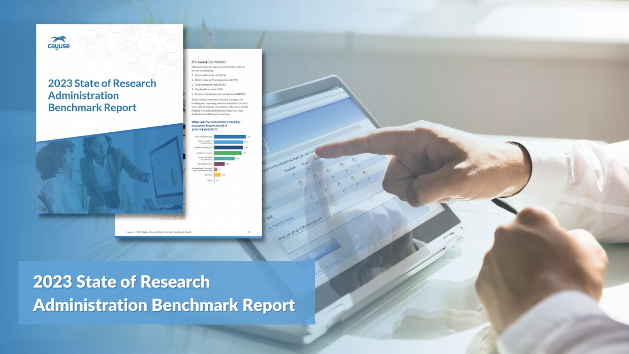 The full 2023 State of Research Administration Benchmark Report is now available to download for free from the Cayuse website. Additionally, Cayuse hosted a webinar that provided an overview of the results and discussed industry trends. Click here to watch the recording of the webinar.