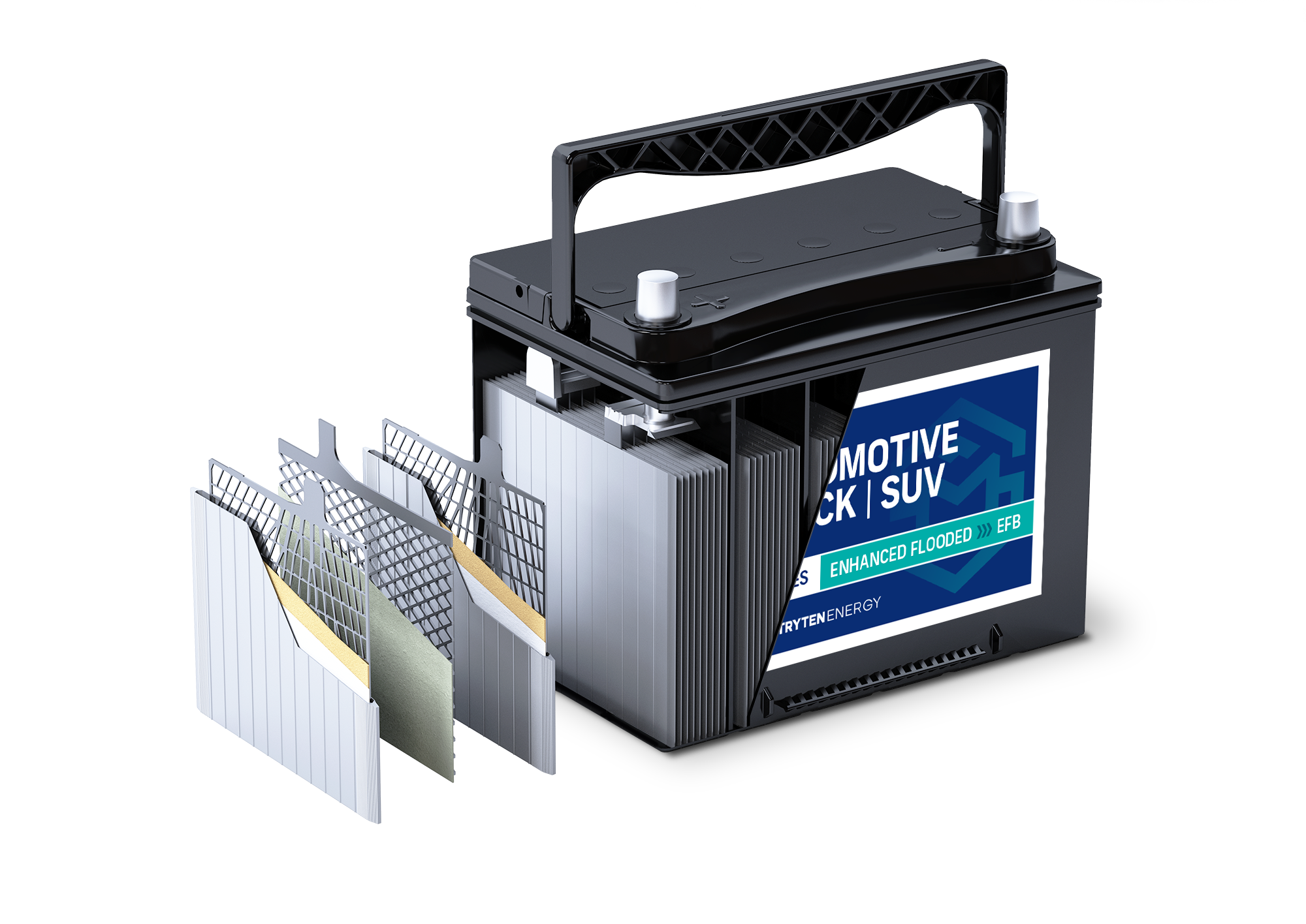 EFB technology provides energy to run modern vehicles' electrical load demands repeatedly without significantly impacting the battery’s performance. For start-stop systems, the battery provides the electrical energy to support vehicle functions during the stop portion of the drive cycle. For this system to work properly, the battery must be resilient during partial state of charge cycling, as well as have an enhanced charge acceptance capability.