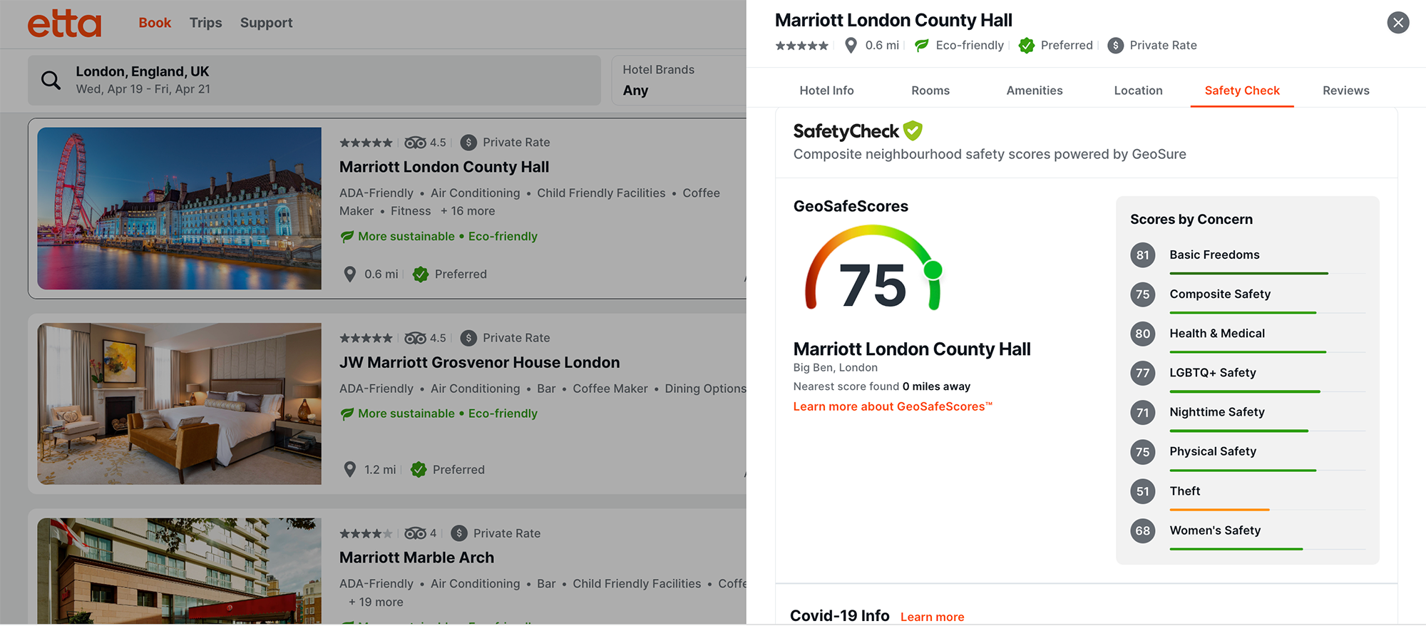 Sustainability information has rapidly increased in importance as well. Deem’s latest research conducted with GBTA (August 2022) showed that 77% of business travelers said reducing carbon footprint while traveling is a moderate or top priority, with travelers ages 18-34 accounting for the highest percentage (86%) of those survey respondents. And business travelers are willing to sacrifice to reduce carbon emissions during travel, for example, most will opt out of daily room cleaning, rent smaller vehicles, and fly premium class less often. EcoCheck, already available in the Etta mobile app, provides accurate carbon emissions data with contextual information and hotel scores within the travel booking process, where it’s needed most to make the right decisions for travelers.