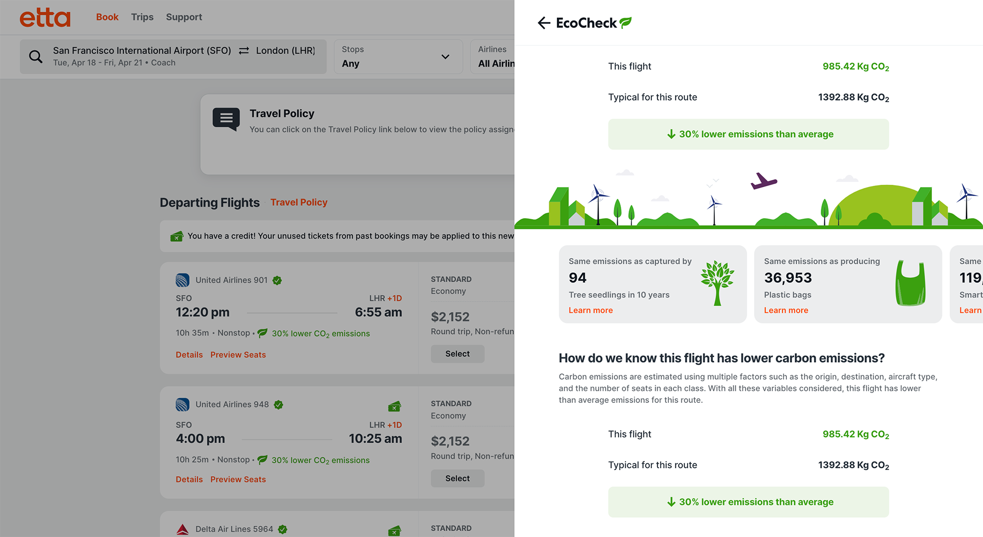 - EcoCheck in Etta, the corporate travel management software powered by Deem