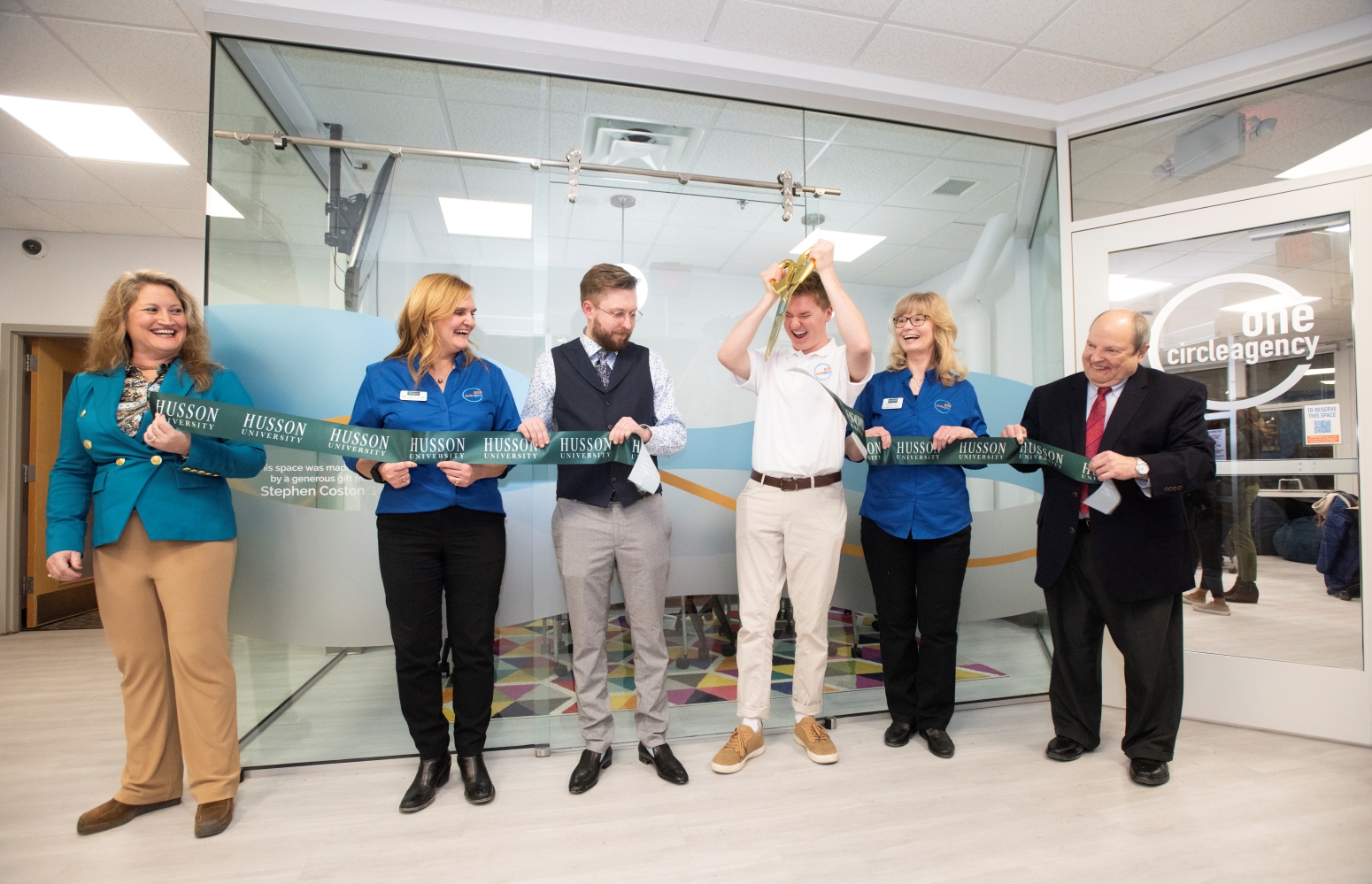 With a location adjacent to the lobby of the Wildey Communications Center, home of the New England School of Communications (NESCom) at Husson University, the One Circle Agency, has already begun to work with area clients. Up to 24 students, of any major, are anticipated to work at the agency on a variety of different projects.