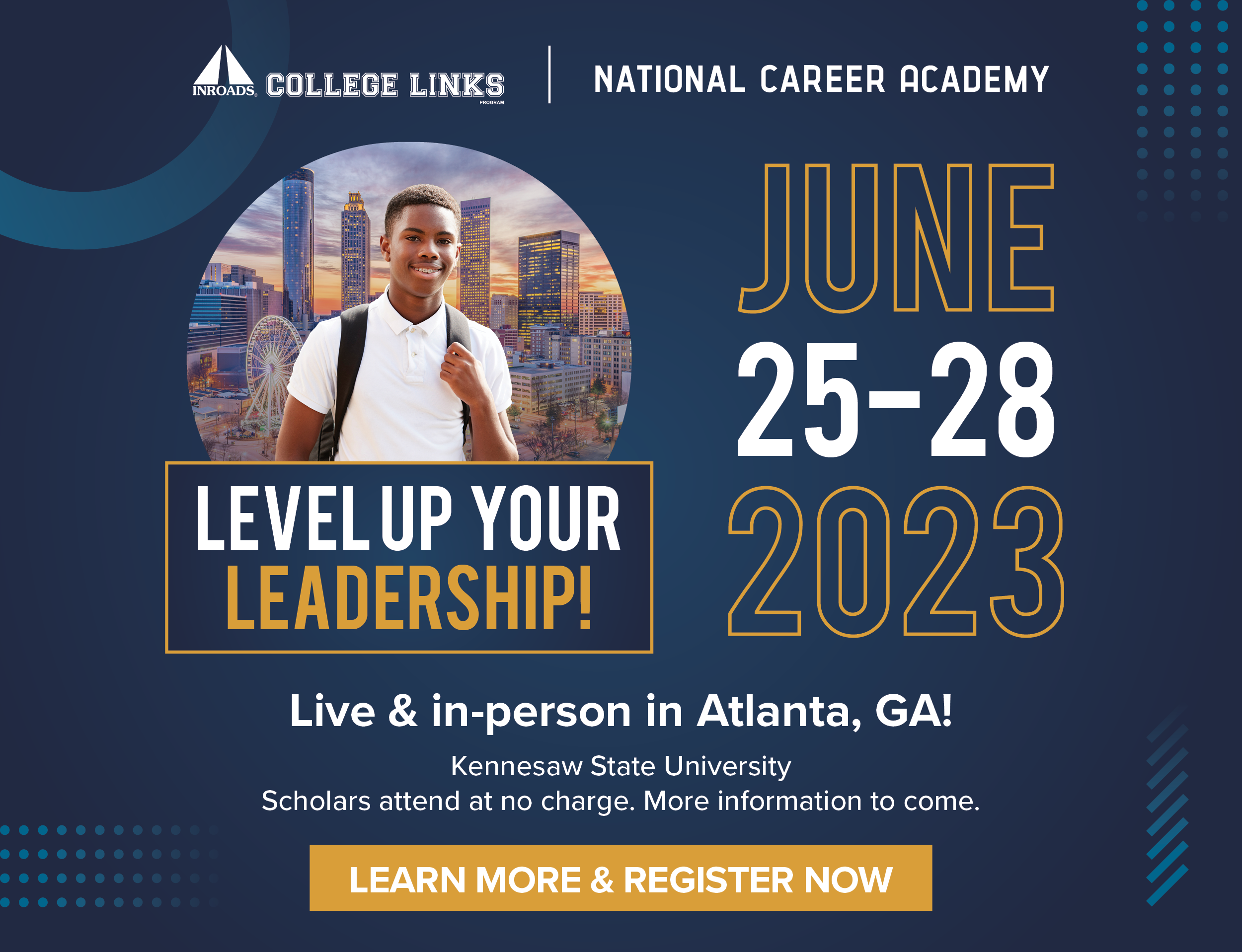 The INROADS National Career Academy will take place from June 25 to June 28 at Kennesaw State University-Marietta Campus, a minority-serving institution.
