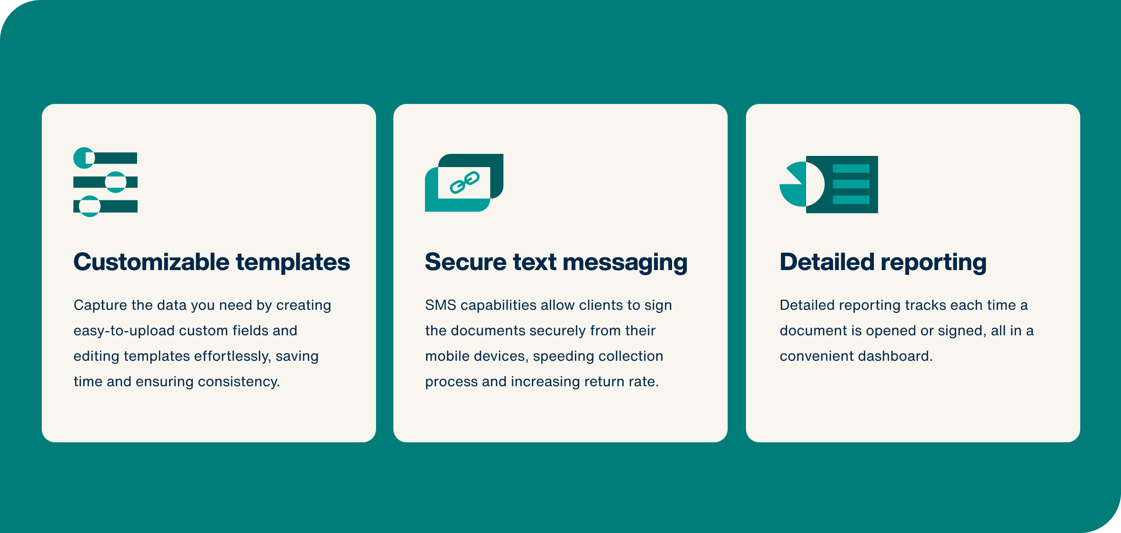 - Text Messaging - Send signatures requests via email and SMS text messaging to accommodate your signers’ preferences and expedite returned signatures.