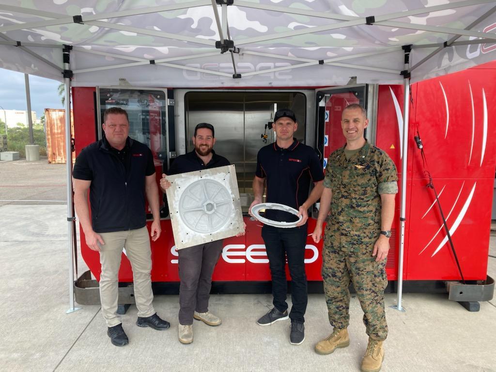 ITX involved a series of progressive exercises that assessed the ability and adaptability of a force of more than 3,700 Marines and sailors over one month. SPEE3D's WarpSPEE3D was deployed to print crucial parts that were broken, brought from ground support at the Marine Corps Air Station in Miramar, California, and then flown to the live fire Marine Corps Air Ground Combat Center Twentynine Palms, California. SPEE3D has repeatedly proven its expeditionary point-of-need capabilities for defense through its participation in multiple military field trials with the US, UK, and Australian militaries over the last few years.