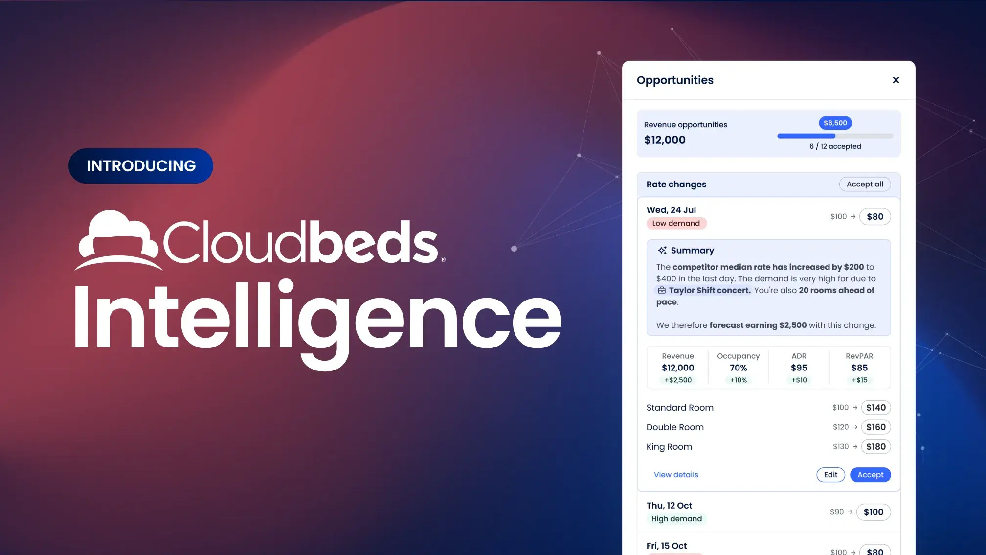 Cloudbeds Intelligence marks a breakthrough in eliminating the traditional silos of hotel management, empowering properties to take specific, data-backed actions across every function of their business – including revenue management, marketing, operations, and guest experience.