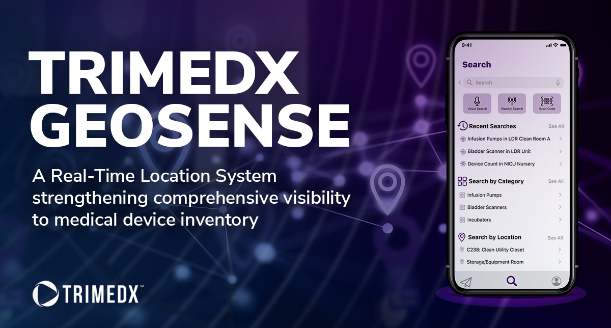Indianapolis, Indiana, April 09, 2024 (GLOBE NEWSWIRE) -- TRIMEDX―an industry-leading, independent clinical asset management company delivering clinical engineering services, clinical asset informatics, and medical device cybersecurity―announced the launch of GeoSense, a Real-Time Location System (RTLS) for health care. TRIMEDX GeoSense provides health systems with accurate and timely medical device tracking data by using next-generation, multi-modal technology that is lightweight, room-level precise, and easy to implement.