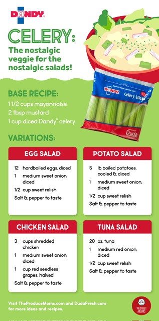 “We love working with The Produce Moms to create simple yet delicious recipes for all to enjoy!” said Nichole Towell, senior director of marketing and packaging procurement at Duda Farm Fresh Foods. “The revival of these classic salads with the addition of our fresh-cut celery is sure to be a hit for families this summer.”