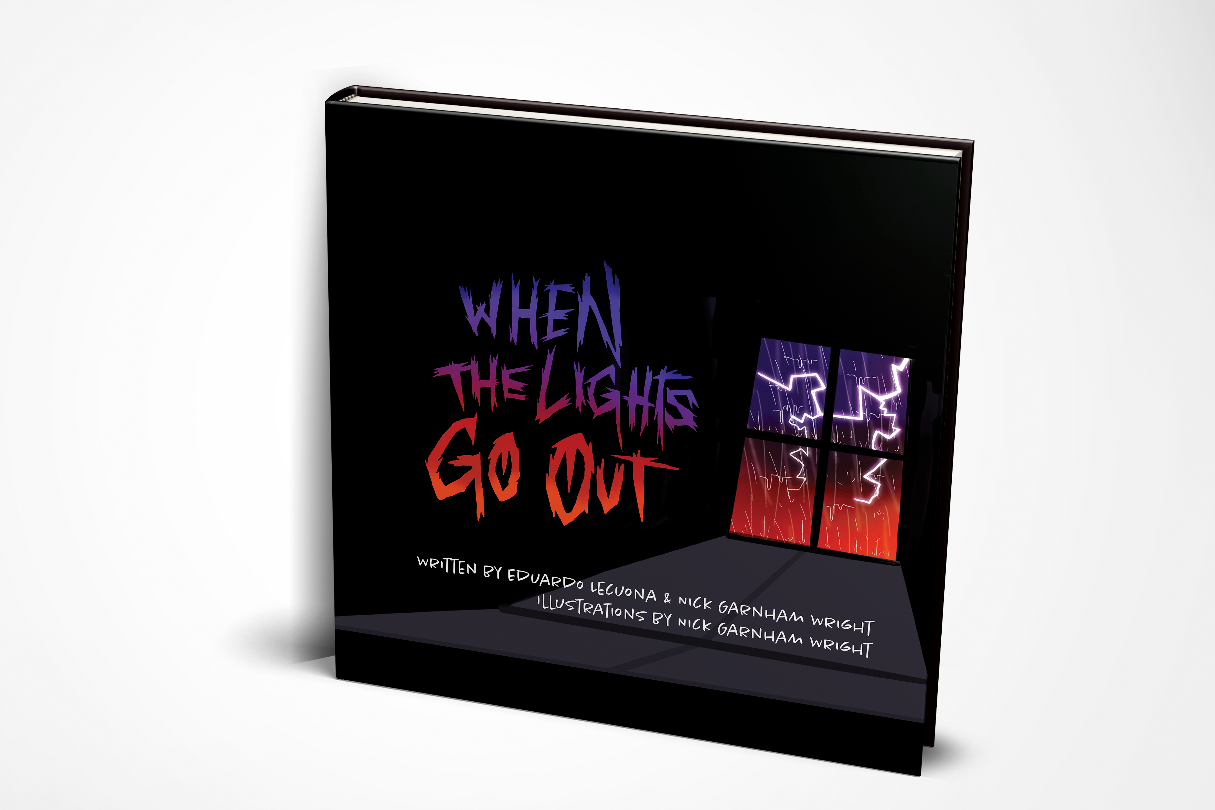 Punk-pop and horror enthusiast Eduardo Lecuona met filmmaker and father Nick Garnham Wright many moons ago at film school. Born six hours and two thousand miles apart, the pair quickly bonded over their shared interests in music, art, and literature. Combining Eduardo’s creepy crawly creative vision with Nick’s passion for poetry and his uniquely charming illustrations, When the Lights Go Out marks their first publication.