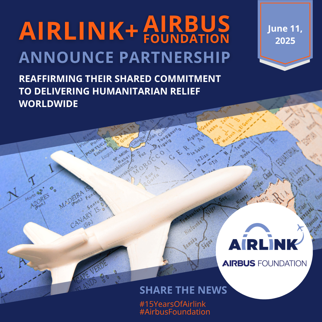 “Airbus Foundation is taking the lead on ushering Airlink into its next fifteen years of transporting aid around the world,” said Steven Smith, President and CEO of Airlink. “They exemplify how crucial strong partnerships are to our ability to respond to disasters, support our NGO partners, and serve communities in need. We are grateful for this immense gift that will support critical responses over the next few years.”